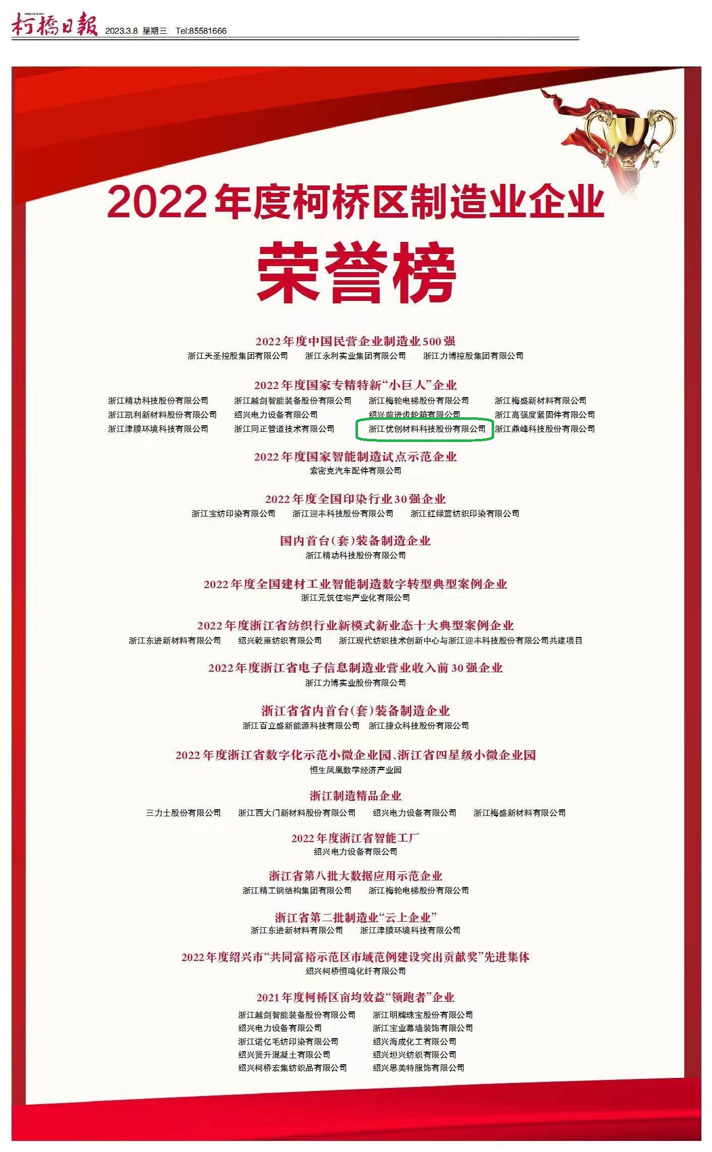 • 喜訊!浙江優(yōu)創(chuàng)材料榮獲2022國家級(jí)專精特新“小...